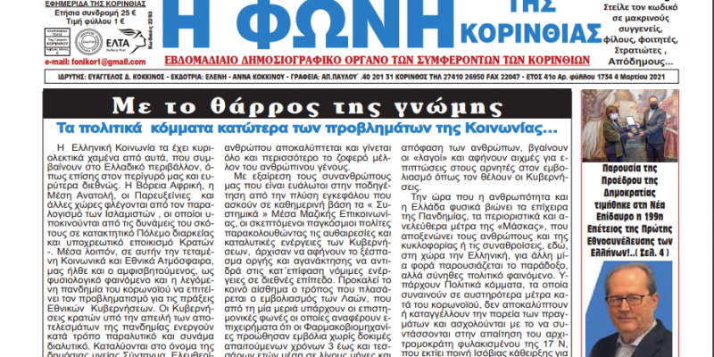 ΕΦΗΜΕΡΙΔΕΣΦΩΝΗ ΤΗΣ ΚΟΡΙΝΘΙΑΣ