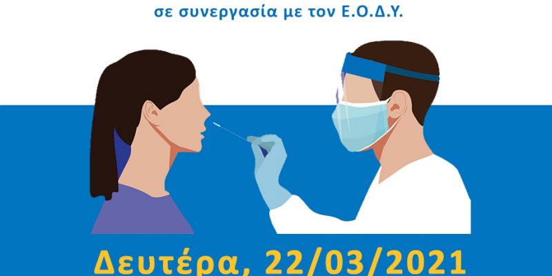 Ο Εθνικός Οργανισμός Δημόσιας Υγείας (ΕΟΔΥ) σε συνεργασία με τον Ερυθρό Σταυρό Κορίνθου και τον Δήμο Λουτρακίου – Περαχώρας – Αγίων Θεοδώρων θα διεξάγουν δωρεάν ελέγχους ταχείας ανίχνευσης αντιγόνου (rapid test) Covid-19, τη Δευτέρα 22 Μαρτίου 2021, στο Λουτράκι.
