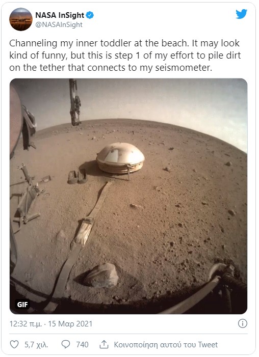Στο μεταξύ, ο Άρης έχει αρχίσει να κάνει δύσκολη τη ζωή του InSight, καθώς η αρειανή σκόνη συσσωρεύεται σταδιακά πάνω στα δίμετρα ηλιακά πάνελ του, μειώνοντας έτσι ολοένα περισσότερο τη διαθέσιμη ηλεκτρική ενέργεια για να λειτουργήσει. Το γεγονός ότι η τωρινή τροχιά τον Άρη τον απομακρύνει συνεχώς από τον Ήλιο, άρα λιγοστεύει την ηλιακή ενέργεια στην επιφάνεια του, καθιστά πιο δύσκολες τις συνθήκες για το InSight, το οποίο ίσως δεν έχει ακόμη πολύ χρόνο μπροστά του για νέες ανακαλύψεις.