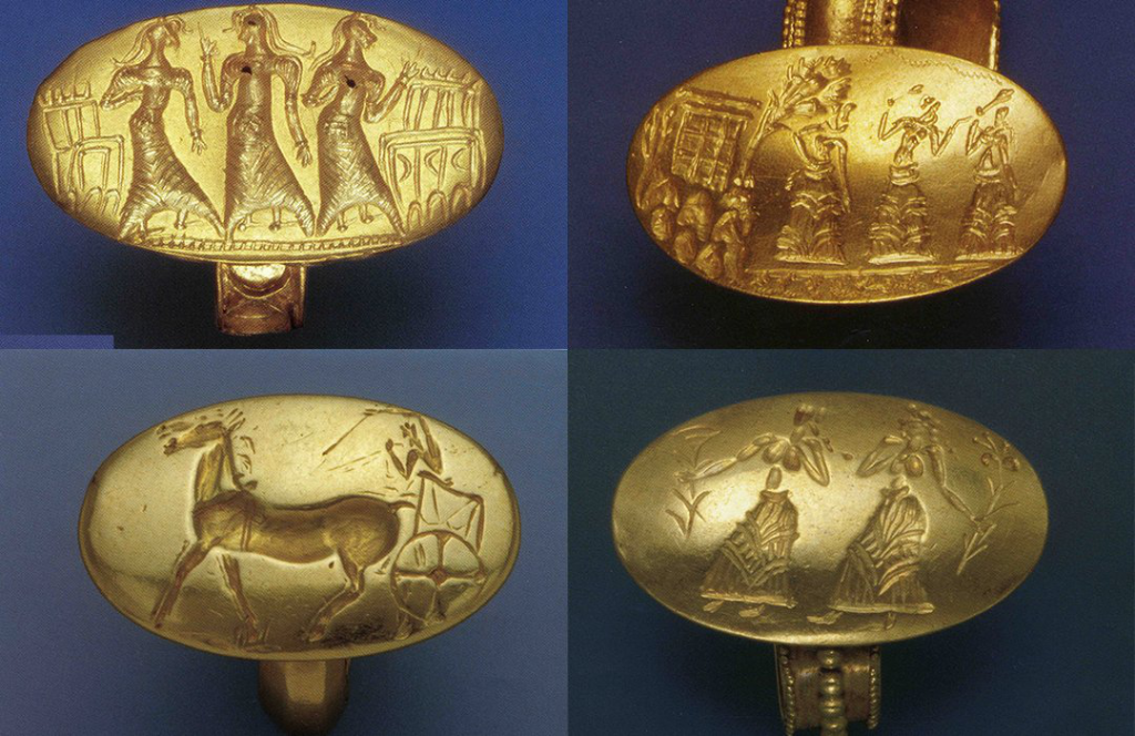Η μυκηναϊκή τέχνη, όπως θα πει και ο Χρήστος Ντούμας, είναι παιδί της μινωικής και, στην προκειμένη περίπτωση του θησαυρού των Αηδονιών, όπως και ευρύτερων περιοχών (Πύλος, Θήβα), είναι εμφανής μια τέτοια σχέση πομπού και δέκτη. Συνεπώς, μπορούμε να κάνουμε λόγο για μία Πολιτισμική Κοινή που αντανακλάται σε αυτά τα κοσμήματα, για μια κοινή πολιτιστική αξία, ιδέες και αισθητική, η οποία, με αφετηρία την μινωική Κρήτη, γίνεται αισθητή, όχι μόνο στην Πελοπόννησο, την βορειοανατολική Κορινθία και την Θήβα, αλλά και στον ευρύτερο αιγαιακό χώρο τον οποίον επηρεάζει από τον 16ο αιώνα π. Χ.