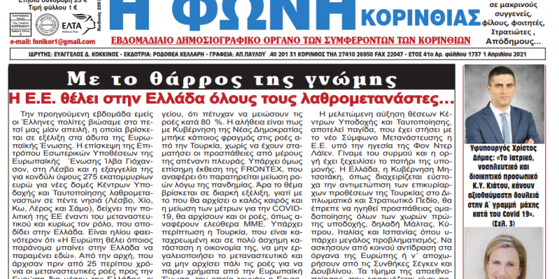 ΕΦΗΜΕΡΙΔΕΣΦΩΝΗ ΤΗΣ ΚΟΡΙΝΘΙΑΣ ΦΩΝΗ ΤΗΣ ΚΟΡΙΝΘΙΑΣ T.1737 1 Απριλίου 2021 By 8eCUgvCwsa 06/April/2021 ShareTweet 0