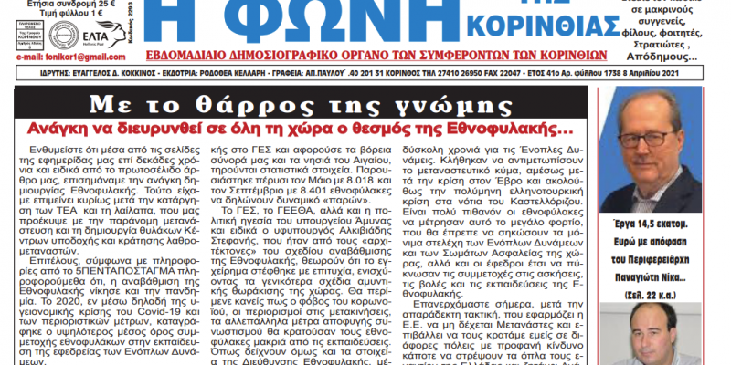 ΕΦΗΜΕΡΙΔΕΣΦΩΝΗ ΤΗΣ ΚΟΡΙΝΘΙΑΣ ΦΩΝΗ ΤΗΣ ΚΟΡΙΝΘΙΑΣ T.1738 8 Απριλίου 2021 By 8eCUgvCwsa 13/April/2021 ShareTweet 0