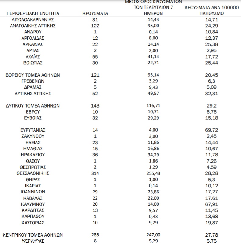 Αναλυτικά τα κρούσματα ανα περιοχή: