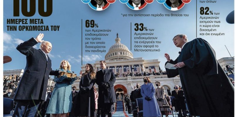 Σε μια πρόσφατη διαδικτυακή συζήτηση στον ιστότοπο FiveThirtyEight, τέσσερις αναλυτές κλήθηκαν να αποκαλύψουν το ένα πράγμα που τους έκανε τη μεγαλύτερη εντύπωση από τις πρώτες 100 ημέρες του Μπάιντεν. Η Τζούλια Αζάρι είπε πως εξεπλάγη από το πόσο ξεκάθαρα επέστρεψε το εκκρεμές μετά την προεδρία Τραμπ, από το πόσο μη επεισοδιακή και μη χαώδης είναι μέχρι στιγμής αυτή η προεδρική θητεία. Η Σάρα Φρόστενσον σχολίασε πως της έκανε εντύπωση το πόσο αριστερά μετακινήθηκε το Δημοκρατικό Κόμμα επί Τραμπ και πόσο πιο φιλελεύθερο είναι επί Μπάιντεν, πεμπτουσίας του μετριοπαθούς Δημοκρατικού. Ο Πέρι Μπέικον «κρατά» πρωτίστως το γεγονός ότι ο Μπάιντεν δεν πολυπίστευε τη ρητορική του για το πώς θα συνεργάζονταν μαζί του οι Ρεπουμπλικανοί: προχωρά επιθετικά μπροστά σε αυτά που θέλει να κάνει και δεν κυνηγάει απεγνωσμένα ρεπουμπλικανικές ψήφους που δεν επρόκειτο ούτως ή άλλως να έρθουν. Οσο για τον Τζόφρι Σκέλι, αυτός σημείωσε το «ταβάνι» που μοιάζει να επιβάλλει η σημερινή, έντονη πολιτική πόλωση στη δημοτικότητα ενός προέδρου: από τον Τζίμι Κάρτερ και εξής, όλοι οι πρόεδροι απολάμβαναν για 100 ημέρες μετά την ορκωμοσία τους ένα ποσοστό δημοτικότητας γύρω στο ή άνω του 58% – μέχρι τον Τραμπ, που είχε ποσοστό δημοτικότητας μόλις 40%. Ο Μπάιντεν, πάλι, φτάνει στο 53%. Και είναι δύσκολο να πει κανείς αν στους ψηφοφόρους αρέσουν αυτά που κάνει ή αν ουσιαστικά όσοι απεχθάνονταν το στυλ διακυβέρνησης του Τραμπ αγαπούν το στυλ του Μπάιντεν και το αντίστροφο.