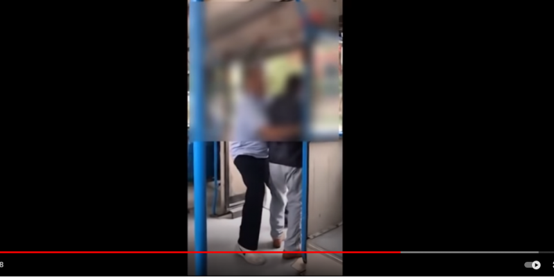 Τη στιγμή εκείνη κι ενώ και οι δύο έχουν μπει μέσα στο λεωφορείο ο οδηγός αντιλαμβάνεται οτι κάποιος επιβάτης τραβάει βίντεο. “Βίντεο τραβάς; Τώρα θα σου πω κι εσένα” είναι τα τελευταία λόγια που ακούγονται.