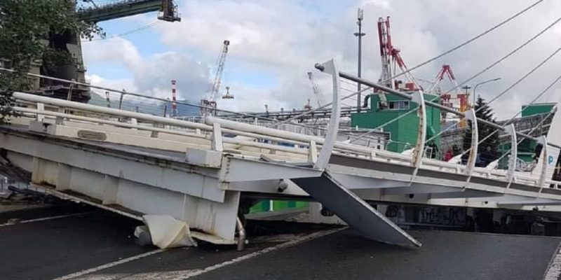 Το περιστατικό σημειώθηκε σήμερα το πρωί. Σύμφωνα με τα τοπικά Μέσα Ενημέρωσης, δεν κατέρρευσε ολόκληρη η γέφυρα αλλά ένα τμήμα αυτής που ανοιγοκλείνει προκειμένου τα πλοία να διασχίζουν το σημείο.