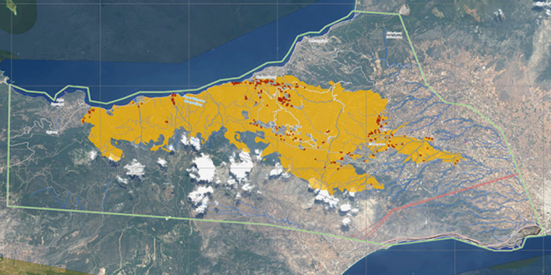 Τα νεότερα στοιχεία των καμένων εκτάσεων προέκυψαν από ανάλυση της Ευρωπαϊκής Υπηρεσίας Εκτάκτων Αναγκών (EMS). Οι υψηλής ανάλυσης εικόνες από τον ευρωπαϊκό δορυφόρο Pleiades-1B το πρωί του Σαββάτου δείχνουν ότι κάηκαν κατά προσέγγιση 41.400 στρέμματα δασικών εκτάσεων, 12.370 στρέμματα καλλιεργειών και 11.870 στρέμματα χορτολιβαδικών εκτάσεων.