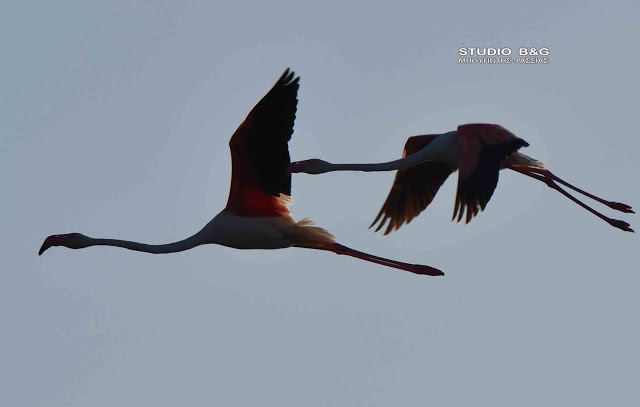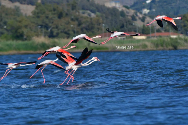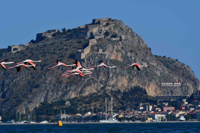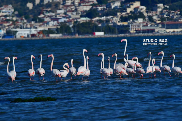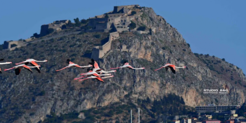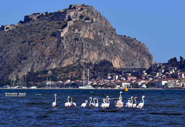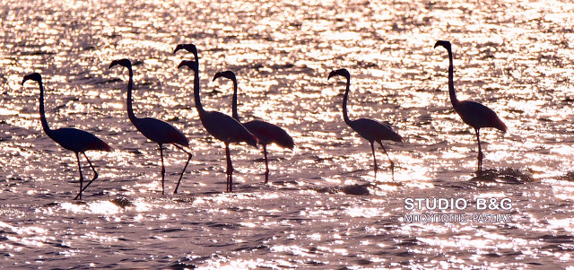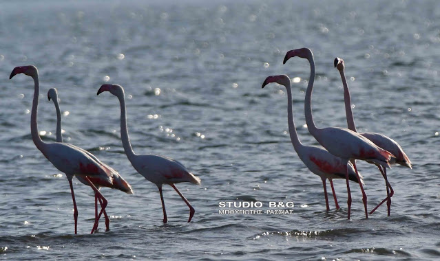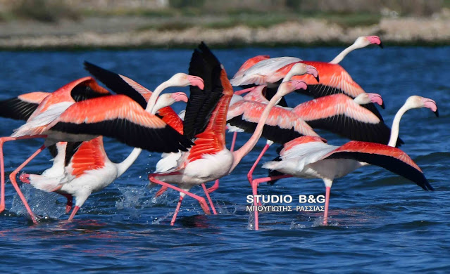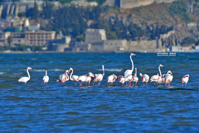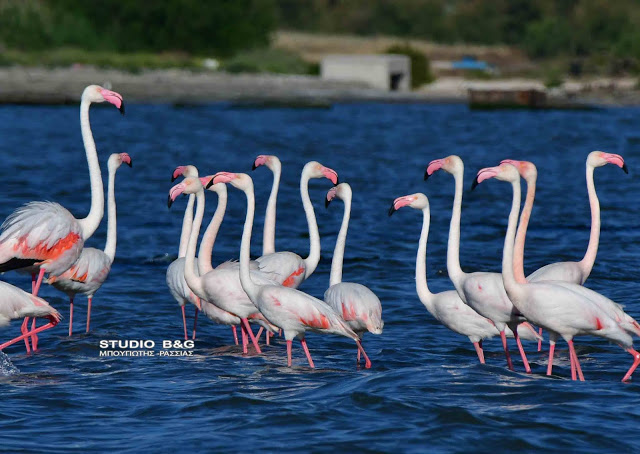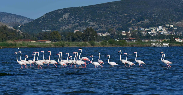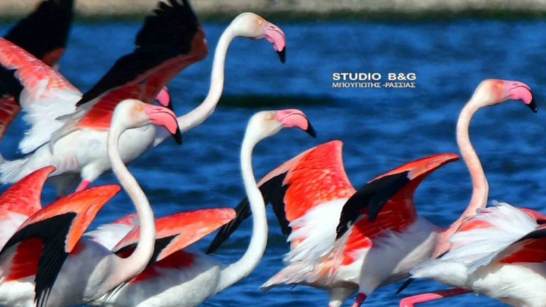 Έτσι και φέτος τριάντα εξωτικής ομορφιάς φλαμίνγκο κατέφθασαν το απόγευμα της Κυριακής 23 Μαϊου στον υδροβιότοπο Ναυπλίου Νέας Κίου στην Αργολίδα για να ξαποστάσουν από το μακρύ ταξίδι της εαρινής μετανάστευσης και να τραφούν.