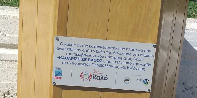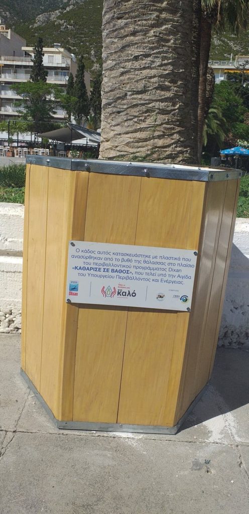 Ο Δήμος Λουτρακίου – Περαχώρας – Αγίων Θεοδώρων παρέλαβε ένα παγκάκι κι έναν κάδο απορριμμάτων, κατασκευασμένα από πλαστικά που ανασύρθηκαν πέρυσι από το λιμάνι Λουτρακίου από την εθελοντική ομάδα Beach Cleaning στο πλαίσιο της περιβαλλοντικής δράσης “Καθάρισε σε βάθος” #KathariseSeVathos του Dixan και τα τοποθέτησε στο Παραλιακό Πάρκο Λουτρακίου.