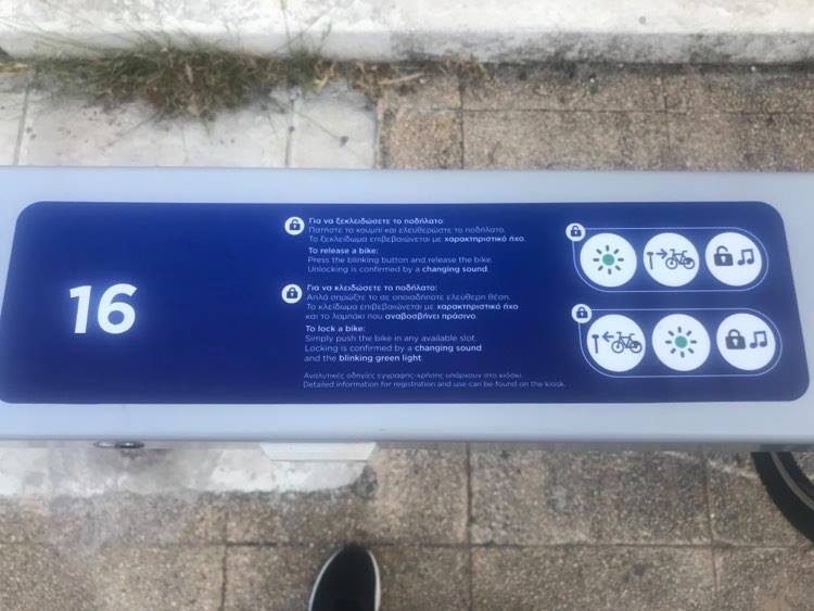 2. Επιλέξτε «Παραλαβή ποδηλάτου». Δείτε στην οθόνη τον αριθμό της θέσης του ποδηλάτου σας