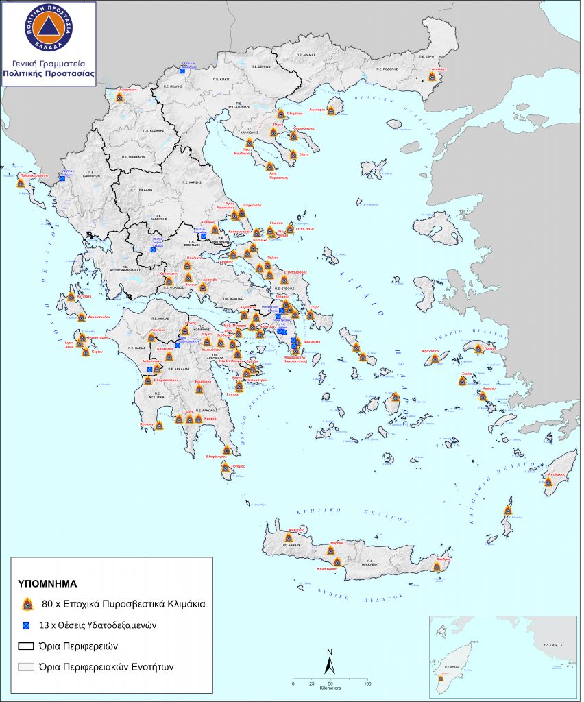 Στο πλαίσιο της ετοιμότητας για την άμεση αντιμετώπιση πυρκαγιάς, και τον εφοδιασμό των ελικοπτέρων, δημιουργήθηκε και ένα δίκτυο υδατοδεξαμενών χωρητικότητας 40.000 λίτρων που τοποθετούνται σε 13 θέσεις στην επικράτεια για υδροληψία σε περιοχές μακριά από θάλασσα ή λίμνες.