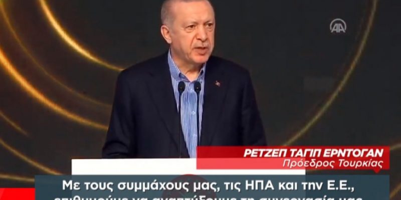 «Είμαστε ικανοποιημένοι με τη δυναμική που έχουμε αναπτύξει το τελευταίο διάστημα με την γειτονική μας χώρα, την Ελλάδα. Mε τους συμμάχους μας, τις ΗΠΑ και την ΕΕ. Eπιθυμούμε να αναπτύξουμε τη συνεργασία μας στο πλαίσιo της θετικής ατζέντας» ανέφερε χαρακτηριστικά σε ομιλία του ο τούρκος πρόεδρος.
