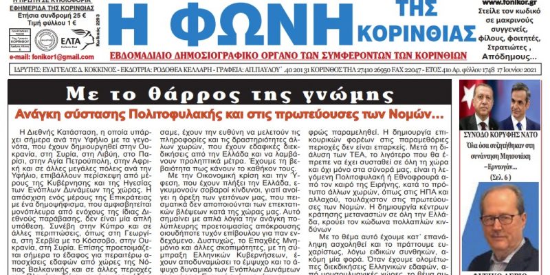 ΕΦΗΜΕΡΙΔΕΣΦΩΝΗ ΤΗΣ ΚΟΡΙΝΘΙΑΣ ΦΩΝΗ ΤΗΣ ΚΟΡΙΝΘΙΑΣ T.1748 17 Ιουνίου 2021 By 8eCUgvCwsa 21/June/2021 ShareTweet 0