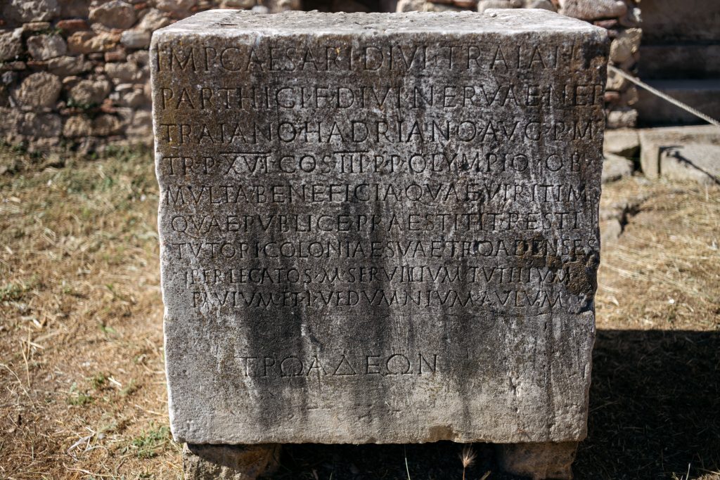 «Τα έργα του Αδριανού στην Αθήνα τα γνωρίζουμε μέσα από τον περιηγητή Παυσανία, που επισκέφθηκε την Αθήνα μετά τον Αδριανό και έψαχνε να συνδέσει τα μνημεία και τους ναούς με μύθους και λατρείες της Ελλάδας, αγνοώντας πολλές φορές τα μνημεία της εποχής του. Γι’ αυτό για τον Αδριανό έχουμε αναφορές κάπου αναλυτικές αλλά κάπου αλλού τηλεγραφικές. Περιγράφοντας το κτίριο των κοινών θεών, αναφέρει ότι ο Αδριανός έχτισε στην Αθήνα κτίριο υπέρλαμπρο με κίονες από τη Φρυγία και κίονες με αλάβαστρο και τοίχους πεποικιλμένους με τοιχογραφίες και σε αυτούς κατάκεινται βιβλία. Περιγράφει ένα κτίριο που έχει χρήση βιβλιοθήκης, δεν αναφέρεται ως βιβλιοθήκη και είναι το πρώτο στοιχείο που έχουμε για την ύπαρξη βιβλιοθήκης από τον Αδριανό. Αναφέρεται συνοπτικά γιατί το θέμα των βιβλιοθηκών στον αρχαίο κόσμο είναι ένα τεράστιο ζήτημα. Τι είναι η βιβλιοθήκη; Είναι ένας χώρος συγκέντρωσης βιβλίων σαν αυτόν που έχουμε σήμερα σπίτια μας ή γνωρίζουμε από τις δημόσιες βιβλιοθήκες;».