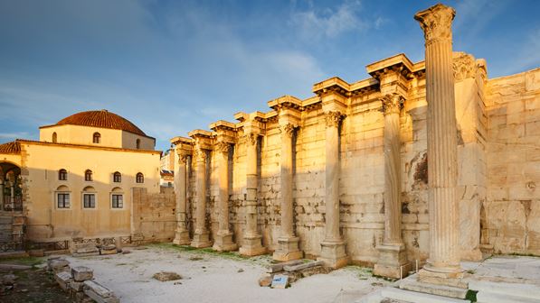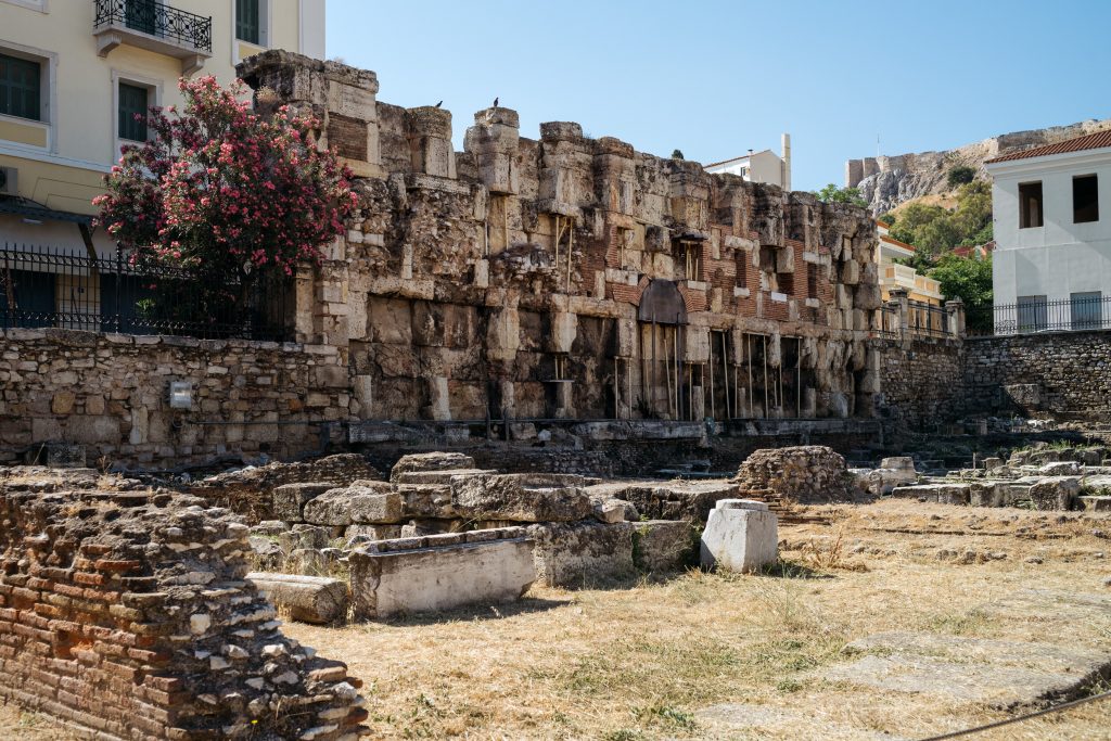 Βρισκόμαστε στη λεγόμενη Βιβλιοθήκη του Αδριανού στο κέντρο της Αθήνας, δίπλα στην πλατεία Μοναστηρακίου και το μετρό.