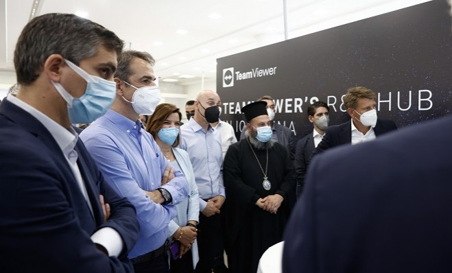 Πιο συγκεκριμένα Μητσοτάκης και Δήμας επισκέφθηκαν το Κέντρο Έρευνας και Ανάπτυξης της διεθνούς τεχνολογικής εταιρείας TeamViewer.