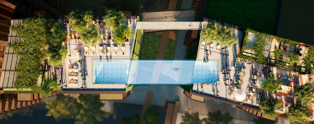 ην τελευταία εβδομάδα του Μαΐου, η πολυαναμενόμενη SkyPool –η μεγαλύτερη ελεύθερη διάφανη πισίνα στον κόσμο– άνοιξε επίσημα στο Embassy Gardens που βρίσκεται στη νέα hot περιοχή του Λονδίνου, το Nine Elms. Στην περιοχή μετακόμισαν και η πρεσβεία των ΗΠΑ αλλά και η Apple δίνοντας τον τόνο ότι εδώ πρόκειται για τη νέα αστική συνοικία στη νότια όχθη του Λονδίνου, με θέα τον ποταμό Τάμεση προς το Chelsea και το Kensington.