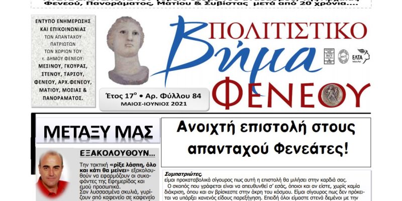 ΕΦΗΜΕΡΙΔΕΣΠΟΛΙΤΙΣΤΙΚΟ ΒΗΜΑ ΦΕΝΕΟΥ ΠΟΛΙΤΙΣΤΙΚΟ ΒΗΜΑ ΦΕΝΕΟΥ T.84 ΜΑΙΟΣ - ΙΟΥΝΙΟΣ 2021 By 8eCUgvCwsa 01/July/2021 ShareTweet 0