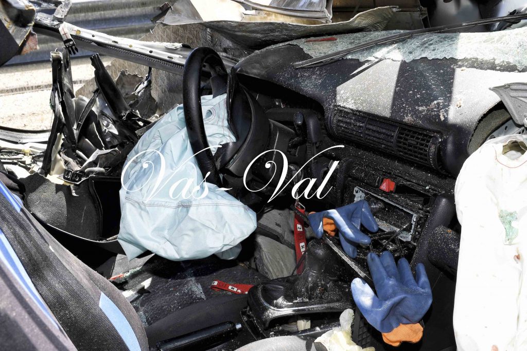 Για τον απεγκλωβισμό του οδηγού επιχείρησαν 9 πυροσβέστες με 3 οχήματα.