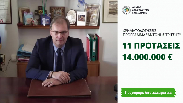 11 προγράμματα συνολικού προϋπολογισμού 14 εκατομμυρίων ευρώ κατέθεσε ο δήμος Ξυλοκάστρου στο πρόγραμμα «Αντώνης Τρίτσης». Με τα προγράμματα αυτά που αφορούν την κάλυψη αναγκών στρατηγικής σημασίας και πάντα μέσα στα πλαίσια που ορίζει το χρηματοδοτικό πρόγραμμα, ο Δήμαρχος Βλάσης τσιώτος φιλοδοξεί να αλλάξει για τα καλά την όψη του δήμου, αλλά κυρίως να ανταποκριθεί στις ανάγκες της επόμενης μέρας