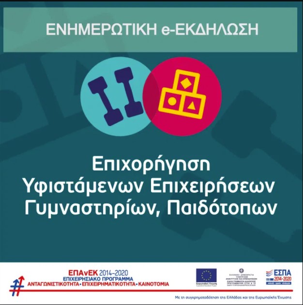 «Επιχορήγηση υφιστάμενων επιχειρήσεων γυμναστηρίων, παιδοτόπων»