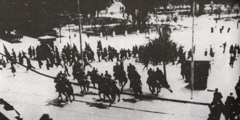 Διακόσιες χιλιάδες λαού στην κατεχόμενη Αθήνα πραγματοποιούν μαχητική διαδήλωση εναντίον της απόφασης των Γερμανών να παραχωρήσουν στη Βουλγαρία ολόκληρη τη Βόρεια Ελλάδα ως τον Αξιό. Εκατό διαδηλωτές νεκροί στην άσφαλτο θα κάνουν τον Χίτλερ να αναστείλει την απόφαση «επ’ αόριστον».