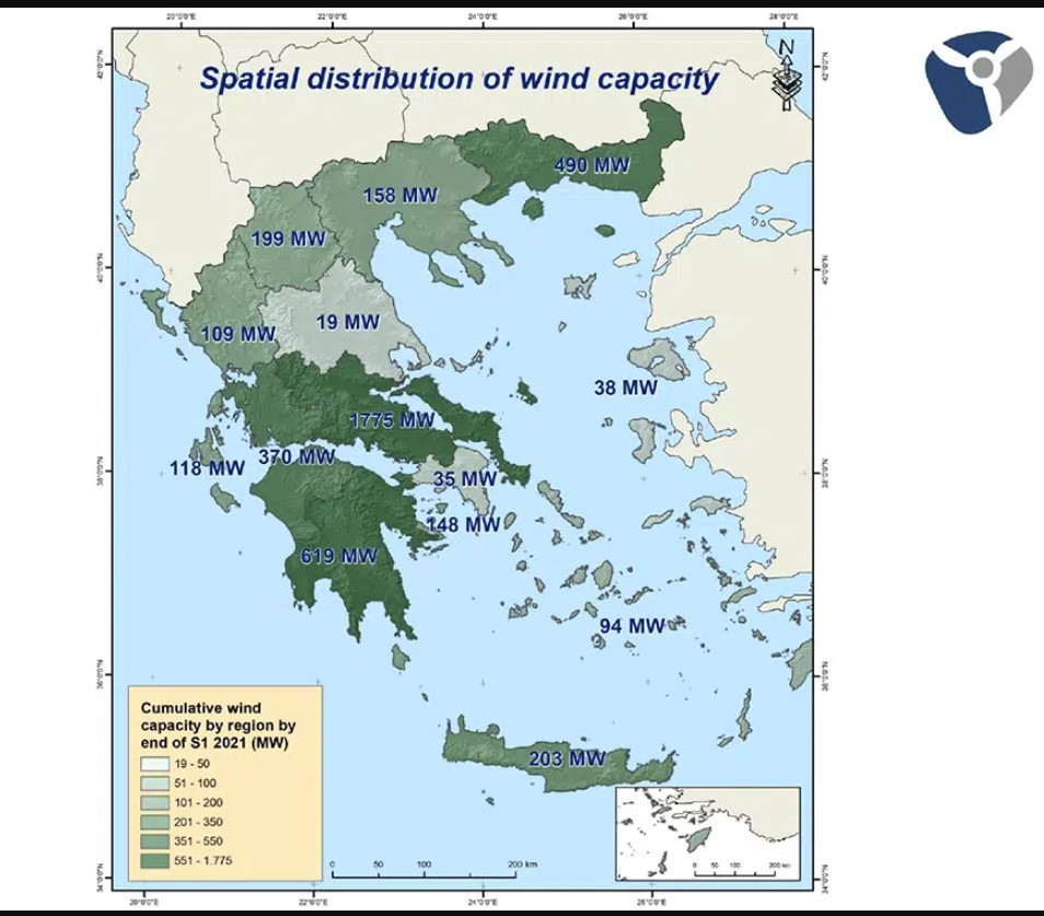 Σύμφωνα με τα στοιχεία της ΕΛΕΤΑΕΝ, η συνολική αιολική ισχύς στην Ελλάδα στο τέλος του πρώτου φετινού εξαμήνου ανήλθε σε 4.374 MW.