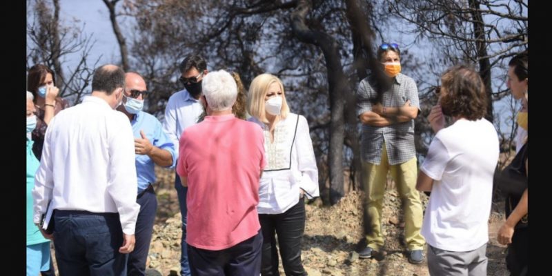 Η Φώφη Γεννηματά υποστήριξε πώς «όλα τα παραπάνω δείχνουν την απόλυτη απουσία σχεδιασμού αλλά και διάθεσης να «γυρίσει, έστω, σελίδα» ο τόπος την «επόμενη μέρα»: Δεν υπήρξε καμία διάθεση αυτοκριτικής για τον τρόπο που χειρίστηκε το αρμόδιο υπουργείο την εξάπλωση της πυρκαγιάς, αλλά και δεν έγινε καμία περαιτέρω συζήτηση για τη διάβρωση που θα έρθει αναπόφευκτα τον επόμενο χειμώνα, τα απαραίτητα αντιπλημμυρικά έργα που πρέπει να γίνουν σήμερα κιόλας, καθώς η περιοχή αντιμετωπίζει σοβαρό θέμα. Η πολιτεία οφείλει να διαθέσει γρήγορα χρηματοδότηση και να κινητοποιηθεί ώστε να ανατεθούν αντιδιαβρωτικές παρεμβάσεις».