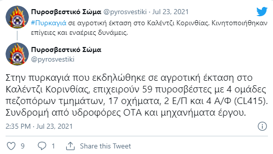 — Πυροσβεστικό Σώμα (@pyrosvestiki) July 23, 2021