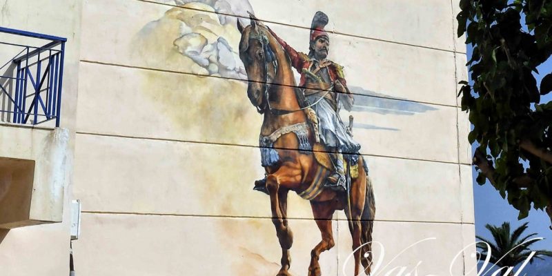 Παραδόθηκε ολοκληρωμένη στο Δήμαρχο Κορινθίων Βασίλη Νανόπουλο η τοιχογραφία που κοσμεί το Δημοτικό Θέατρο και αναπαριστά τον στρατηγό Θεόδωρο Κολοκοτρώνη, έφιππο κατά την παράδοση του κάστρου της Ακροκορίνθου.