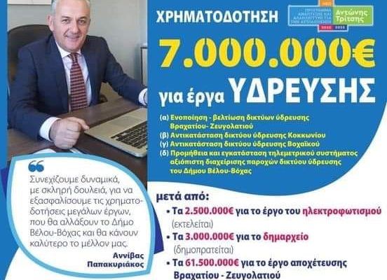 Στην αντικατάσταση του εσωτερικού και εξωτερικού δικτύου ύδρευσης της Τοπικής Κοινότητας Βοχαϊκού προχωρά η δημοτική αρχή του Δήμου Βέλου-Βόχας. Ο οικισμός του Βοχαϊκού διαθέτει δίκτυο ύδρευσης, το οποίο, όμως, λόγω της παλαιότητάς του, παρουσιάζει σημαντικά προβλήματα στη λειτουργία του, όπως διακοπές υδροδότησης λόγω θραύσεων αγωγών και απώλεια σημαντικής ποσότητας υδρευτικού νερού. Έτσι, δεν μπορεί να εξασφαλίσει επάρκεια και καλή ποιότητα του πόσιμου ύδατος.