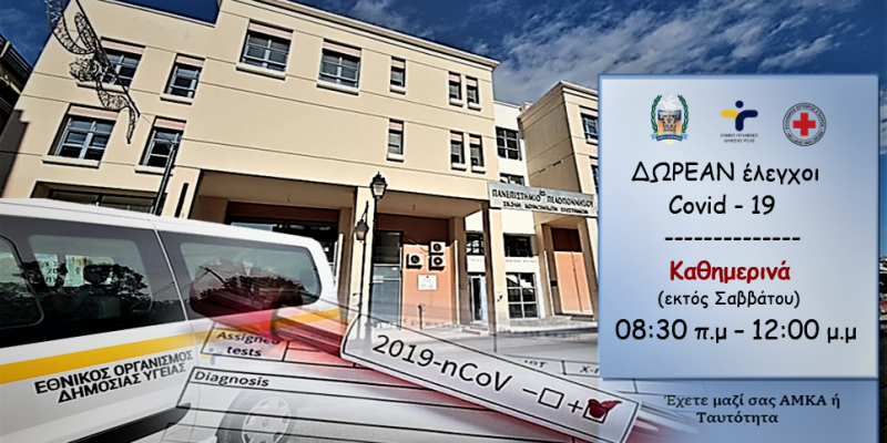 Ειδικότερα, οι Κινητές Μονάδες Υγείας (ΚΟΜΥ) του ΕΟΔΥ θα βρίσκονται και θα διενεργούν rapidtest στο Δημοτικό Θέατρο Κορίνθου