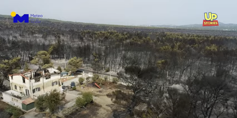 Σοκαριστικά είναι τα πλάνα από drone πάνω από τη Βαρυμπόμπη η οποία βίωσε μια μεγάλη πυρκαγιά χθες, Τρίτη.