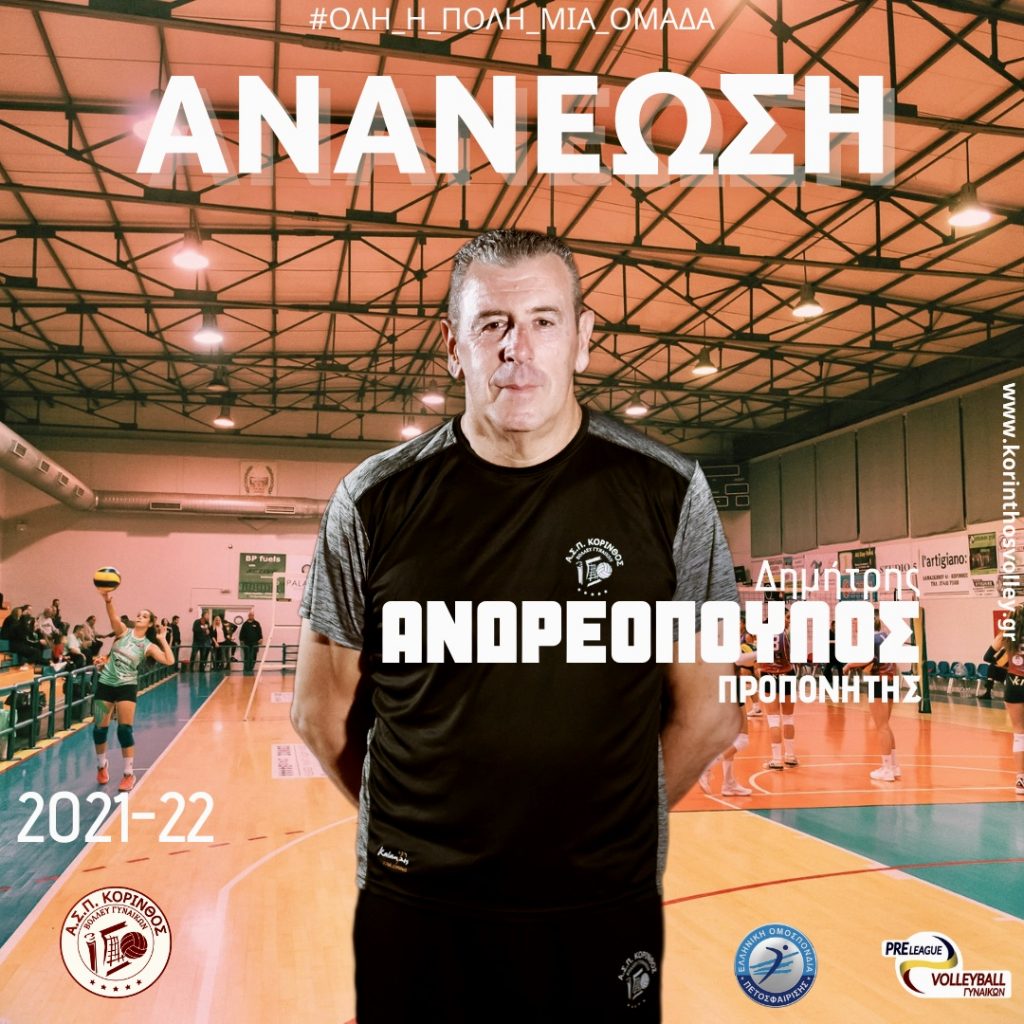Η διοίκηση του ΑΣΠ Κόρινθος είναι στην ευχάριστη θέση να ανακοινώσει την ανανέωση της συνεργασίας της με τον έμπειρο τεχνικό Δημήτρη Ανδρεόπουλο.