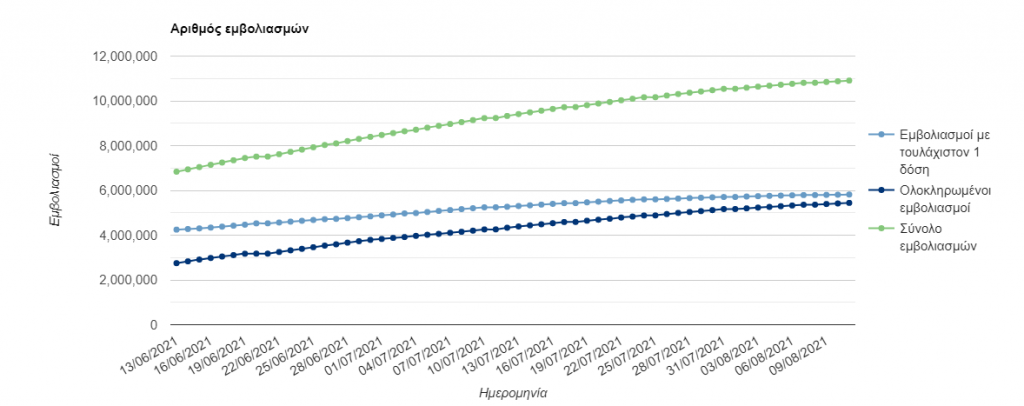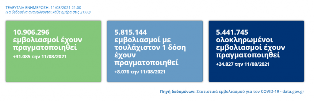 | ΠΕΛΛΑΣ | 121.716 (+310 την 11/08/2021) | 64.223 (+93 την 11/08/2021) | 60.859 (+228 την 11/08/2021) |