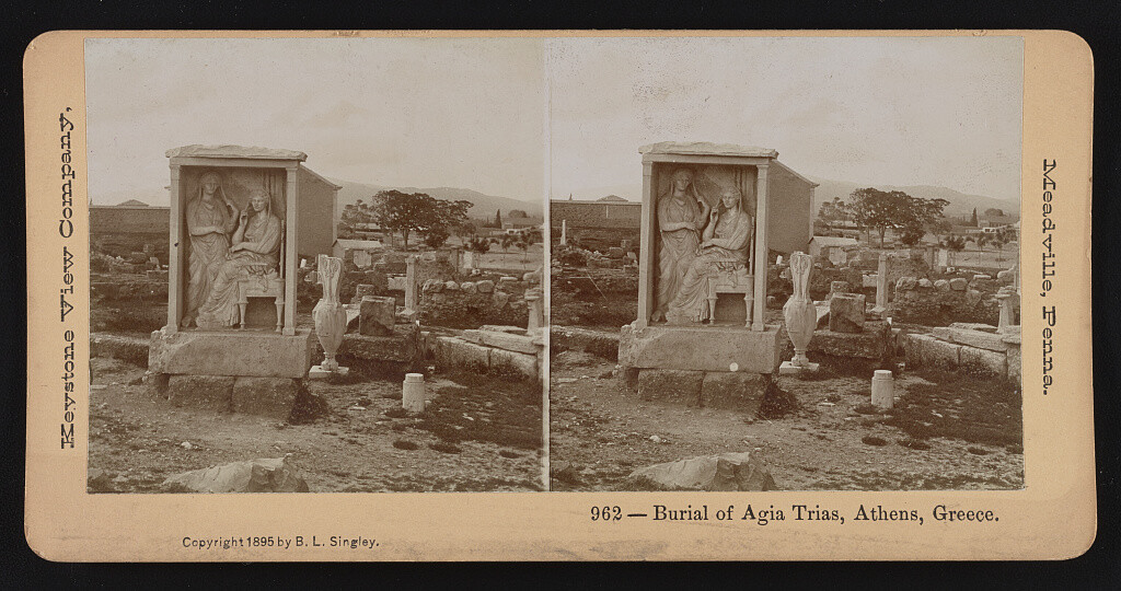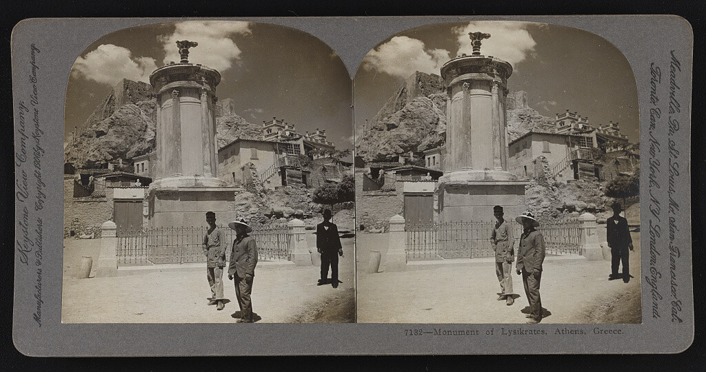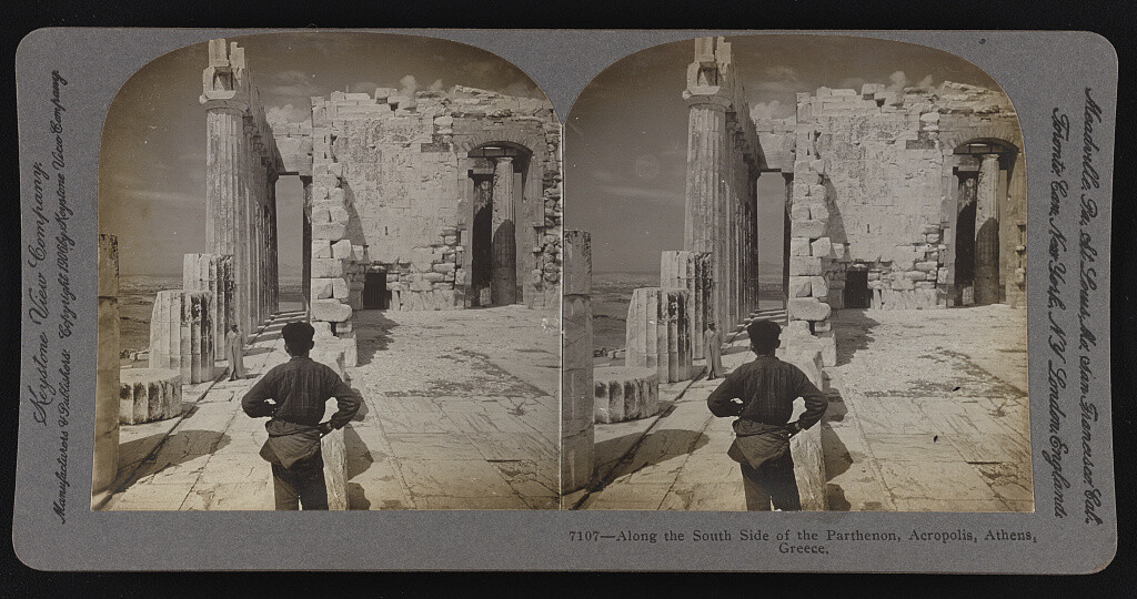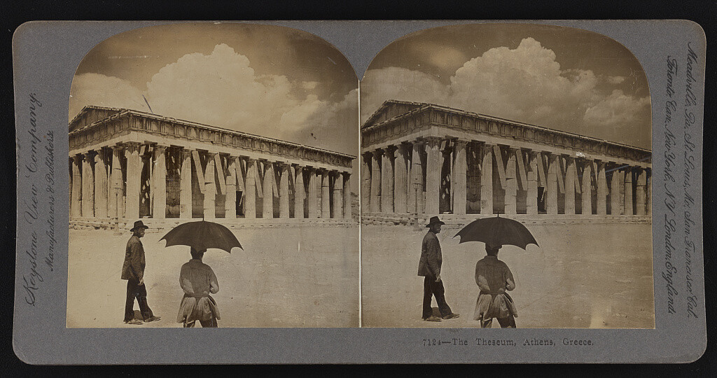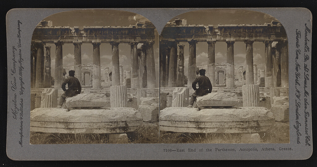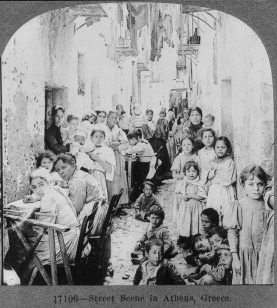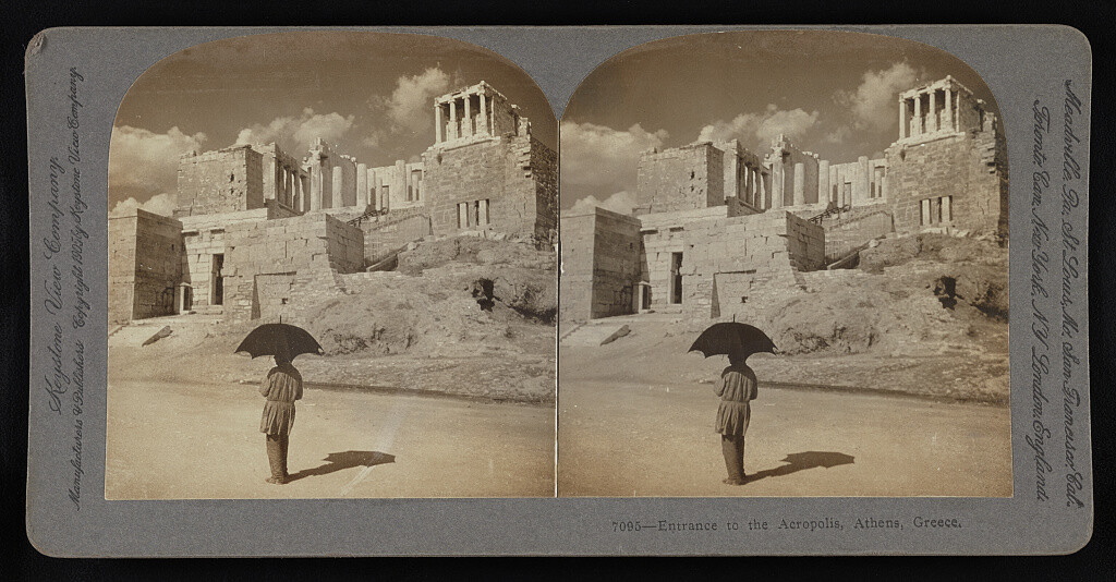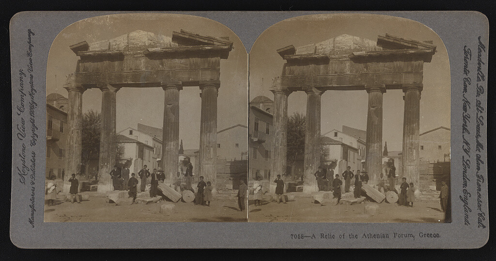 Πλανόδιος πωλητής πουλερικών με παραδοσιακή φορεσιά στην Αθήνα του 1895. Φωτ.: Library of CongressΗ φωτογραφία δείχνει άντρες και αγόρια να στέκονται μπροστά από την Ακαδημία Αθηνών, σχεδιασμένη από τον βαρόνο Θεόφιλο Έντουαρντ φον Χάνσεν, μέρος της Τριλογίας του στο κέντρο της Αθήνας. Φωτ.: Library of Congress Αθήνα, 1895. Φωτ.: Library of Congress Η στήλη της Δήμητρας και της Παμφίλης στο αρχαίο νεκροταφείο στον Κεραμεικό, 1895. Φωτ.: Library of Congress Η αψίδα του Αδριανού και ο ναός του Ολυμπίου Διός, 1900. Φωτ.: Library of Congress Κοιτώντας την Ακρόπολη, 1900. Φωτ.: Library of Congress Ερέχθειο, 1900. Φωτ.: Library of Congress Πωλητής λαχανικών, 1900. Φωτ.: Library of Congress Στο μνημείο του Λυσικράτη, 1900. Φωτ.: Library of Congress Είσοδος στην Ακρόπολη, 1905. Φωτ.: Library of Congress Η Αθήνα και η Ακρόπολη από τον λόφο του Φιλοπάππου, 1906. Φωτ.: Library of Congress Το ανατολικό άκρο του Παρθενώνα, 1906. Φωτ.: Library of Congress Σε δρόμο της Αθήνας, 1906. Φωτ.: Library of Congress Στη νότια πλευρά της Ακρόπολης, 1906. Φωτ.: Library of Congress Στο Πανεπιστήμιο, 1906. Φωτ.: Library of Congress Η Αθήνα και η Ακρόπολη από τον Λυκαβηττό, 1906. Φωτ.: Library of Congress Στους Αέρηδες, 1906. Φωτ.: Library of Congress Η Πύλη της Αθηνάς στη Ρωμαϊκή Αγορά, 1906. Φωτ.: Library of Congress Η φωτογραφία δείχνει το μνημείο του Λυσικράτη, προστάτη των μουσικών παραστάσεων στο Θέατρο του Διονύσου, 1906. Φωτ.: Library of Congress Ναός του Ήφαιστου, 1906. Στο Θησείο, 1906. Φωτ.: Library of Congress Πωλητής λαχανικών με κάρο που το σέρνουν βόδια στην Αθήνα του 1906. Φωτ.: Library of Congress Γυναίκες και παιδιά μαζεμένοι σε ένα στενό δρόμο της Αθήνας, 1919. Φωτ.: Library of Congress