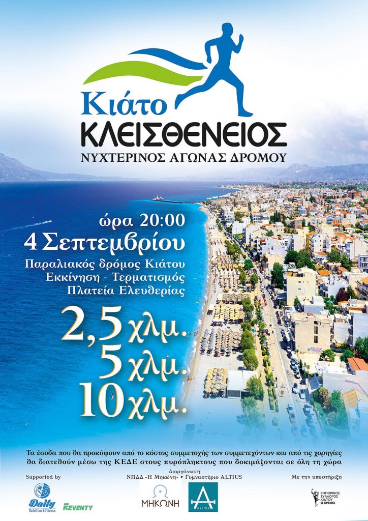 Για να δηλώσετε συμμετοχή στον «Κλεισθένιο» Νυχτερινό Αγώνα Δρόμου, πηγαίνετε μέσω της σελίδας σας στο facebook στην σελίδα: «Κλεισθένειος» Νυχτερινός Αγώνας Δρόμου Κιάτου και κάνετε εγγραφή, έτσι θα είναι έγκυρη η συμμετοχή σας. Το κόστος είναι 5 ευρώ