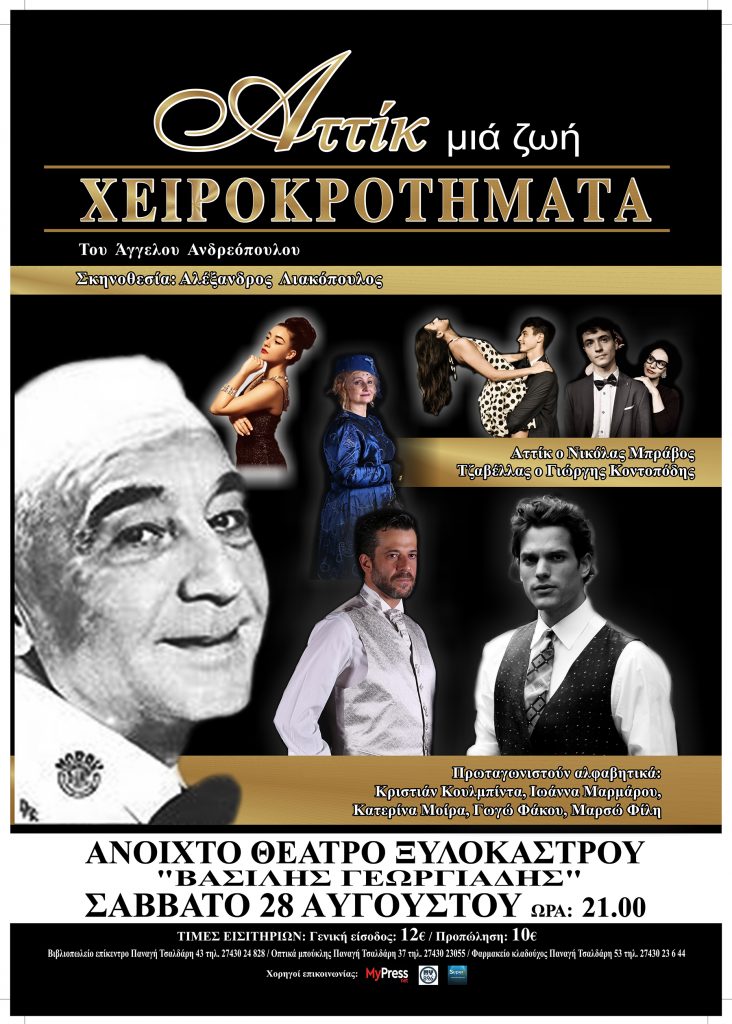 Η παράσταση ΑΤΤΙΚ, ΜΙΑ ΖΩΗ ΧΕΙΡΟΚΡΟΤΗΜΑΤΑ έρχεται στο Ξυλόκαστρο