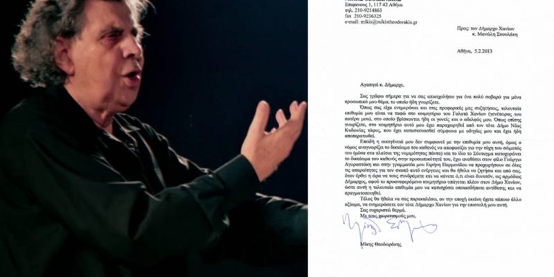 Δείτε την επιστολή του Μίκη Θεοδωράκη προς τον τότε δήμαρχο Μανώλη Σκουλάκη και τη δήλωση του Παναγιώτη Σημανδηράκη: