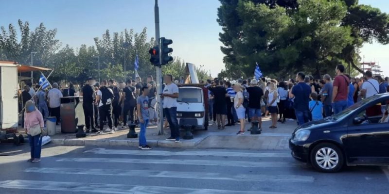 Οι διαδηλωτές -ελάχιστοι εκ των οποίων φορούν μάσκες και ουδείς κρατά αποστάσεις- που μαζεύτηκαν στον Λευκό Πύργο κρατούν ελληνικές σημαίες και φωνάζουν… ευφάνταστα συνθήματα κατά του εμβολιασμού («εεε, οοο, πάρτε το εμβόλιο και φύγετε από δω»), της κυβέρνησης και των Μέσων Ενημέρωσης. Στο σημείο βρέθηκαν και φυλλάδια του νέου κόμματος του καταδικασμένου για τη συμμετοχή του στην εγκληματική οργάνωση της Χρυσής Αυγής Ηλία Κασιδιάρη.