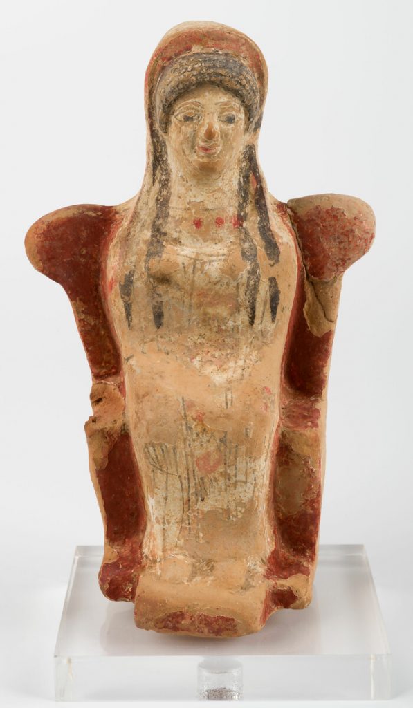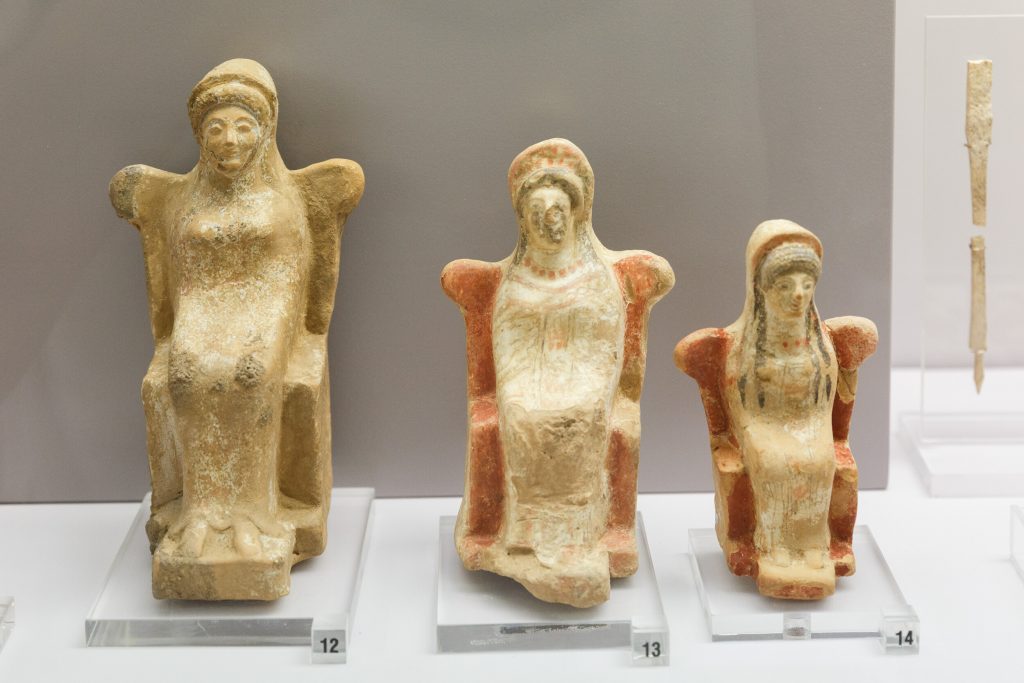 Μεταξύ άλλων, βρέθηκαν εκεί και εκτίθενται στη Συλλογή πολλά ομοιώματα αυτιών και κεράτων ταύρου αλλά και περίτεχνο αγαλματίδιο το οποίο απεικονίζει, πιθανότατα, τη θεά του έρωτα. Ιερό αφιερωμένο στον Παρνήσιο Δία είχαν ανεγείρει οι αρχαίοι Αχαρνείς ήδη από τη Γεωμετρική Εποχή και στην κορυφή της Πάρνηθας, στη θέση όπου βρίσκονται σήμερα οι κεραίες του ΟΤΕ, με τα εκεί ανασκαφικά ευρήματα να φιλοξενούνται σήμερα στο Αρχαιολογικό Μουσείο Πειραιά.
