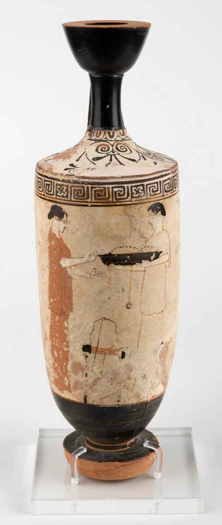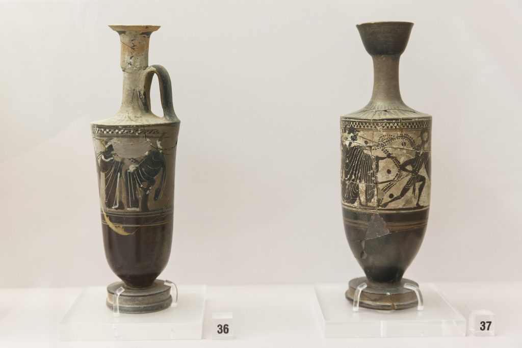Υπάρχουν κι άλλες λευκές και μελανόμορφες λήκυθοι μεγάλης καλλιτεχνικής αξίας, ολόκληρες ή θραύσματα, μελανόμορφα αγγεία με πομπές, αρματοδρομίες και διονυσιακές σκηνές, καθώς επίσης αλάβαστρα με ίχνη από επικάλυψη φύλλων χρυσού, χάλκινη στλεγγίδα και χάλκινα κάτοπτρα.