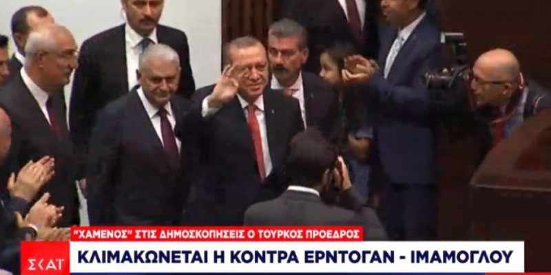 Δεν είναι τυχαίο που πριν από λίγες ημέρες, δημοσκόπηση ήθελε τον Ερντογάν να χάνει από τον Εκρέμ Ιμάμογλου, με 18 μονάδες διαφορά. Ο πρόεδρος της Τουρκίας – εφόσον έχει αντίπαλο τον δήμαρχο της Κωνσταντινούπολης θα λάμβανε 41,1% έναντι 58,9%. Αλλά και αν είχε αντίπαλο τον δήμαρχο της Άγκυρας, Μανσούρ Γιαβάς, πάλι θα έχανε με 15 μονάδες.. θα έπαιρνε 42,6% έναντι 57,4%.