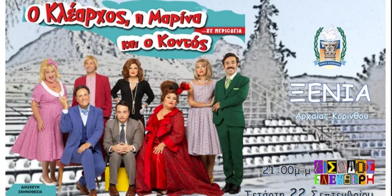 Ο Δήμος Κορινθίων φιλοξενεί τη θεατρική κωμωδία των Νίκου Τσιφόρου – Πολύβιου Βασιλειάδη «Ο Κλέαρχος, η Μαρίνα και ο Κοντός» σε διασκευή και σκηνοθεσία Χάρη Ρώμα. Πρόκειται για μία από τις πιο επιτυχημένες θεατρικές κωμωδίες, η οποία κάνει “στάση”, στα πλαίσια της καλοκαιρινής της περιοδείας, στην Κόρινθο, δίνοντας την ευκαιρία στους δημότες μας να βρεθούν κοντά σε αγαπημένους τους ηθοποιούς.