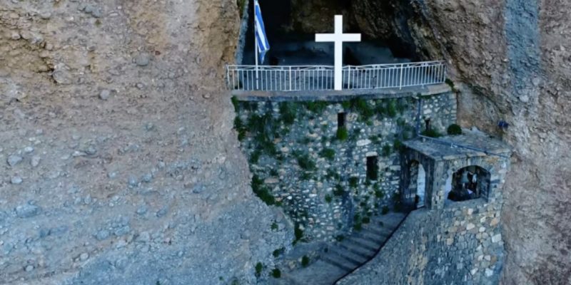 Μια νεαρή μητέρα με το μωρό στην αγκαλιά της ικέτευε να λυπηθούν το παιδί της. Οι Τούρκοι όμως δε συγκινήθηκαν και την έριξαν από το βράχο μαζί με το μωρό. Εκείνη όμως, επικαλέστηκε τη βοήθεια της Παναγίας: «Παναγία μου, σώσε μας!» και ω του θαύματος, η γυναίκα βρέθηκε στη βάση του κάθετου βράχου στα 100 μέτρα σώα και αβλαβής. Από ευγνωμοσύνη για τη σωτηρία της η γυναίκα αυτή διαμόρφωσε τη σχισμή του βράχου σε ναό, βάζοντας κάποιες εικόνες.