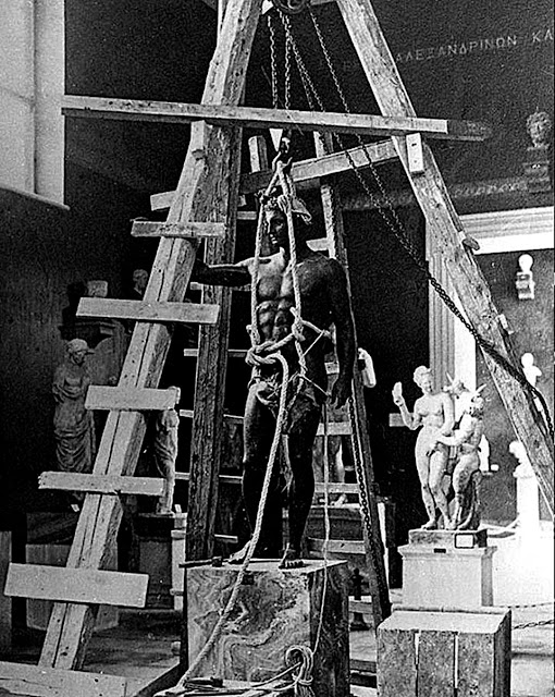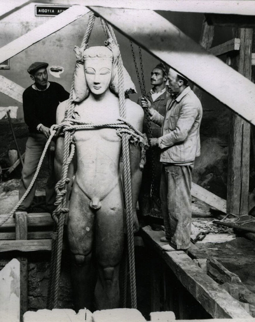 Ο Γιώργος Σεφέρης στις «Μέρες» περιγράφει: «Τρίτη 4 Ιουνίου 1946. Το μεσημέρι στο Αρχαιολογικό Μουσείο. Ξεθάβουν τώρα –άλλα σε κάσες και άλλα γυμνά κατάσαρκα μέσα στο χώμα–, τα αγάλματα. Σε μία από τις παλιές μεγάλες αίθουσες, γνώριμες από τα μαθητικά μας χρόνια με τη στεγνή όψη που έφερνε κάπως προς τη βαρετή δημόσια βιβλιοθήκη, οι εργάτες δουλεύουν με φτυάρια και με αξίνες. Το δάπεδο, αν δεν κοίταζες τη στέγη, τα παράθυρα και τους τοίχους με τις χρυσές επιγραφές, θα μπορούσε να ήταν ένας όποιος τόπος ανασκαφών. Τα αγάλματα βυθισμένα ακόμη στη γης, φαινόντουσαν από τη μέση και πάνω γυμνά, φυτεμένα στην τύχη… Ηταν ένας αναστάσιμος χορός αναδυομένων, μια δευτέρα παρουσία σωμάτων που σου έδινε μια παλαβή χαρά».