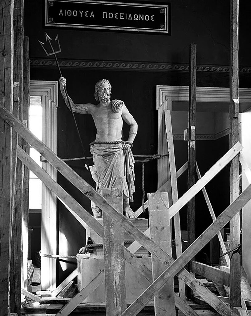 Μαρμάρινο άγαλμα του Ποσειδώνα από τη Μήλο λίγο πριν από την απόκρυψή του
