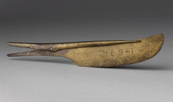 Βλέπουμε ένα “σίδερο μαλλιών”, Συγκεκριμένα για μπούκλες που χρησιμοποιούσαν οι Αρχαίοι Αιγύπτιοι. Το πήραμε από αυτούς και το ονομάσαμε “καλαμιστήρα”. Τα μαλλιά με την τεράστια σημασία τους για τους αρχαίους ημών προγόνους, ήθελαν την περιποίησή τους. Η τριχοβάτρια χρησιμοποιούσε βοστρυχωτήρες (πιστολάκι), ψαλίδια σαν τα σημερινά, καρφίδες(τσιμπιδάκια) & φυσικά χτένες.