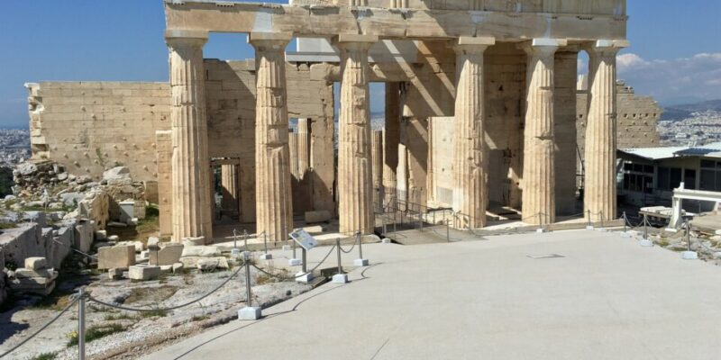 Αναφερόμενος στην πρόσφατη διαμόρφωση των διαδρόμων της Ακρόπολης, ο κ. Κορρές σημείωσε ότι επιτρέπουν τη σωστή ανάγνωση του χώρου, όπως τον είχε σχεδιάσει ο αρχιτέκτονας των Προπυλαίων, Μνησικλής. «Γι’ αυτό το “τσιμεντώσαμε”», τόνισε αναφερόμενος στην πλατεία μπροστά από τα Προπύλαια και στο μικρό κομμάτι εδάφους που παραχωρήθηκε στο έργο του Μνησικλή, ενώ ανήκε στο Ιερό της Αρτέμιδος Βραυρωνίας.