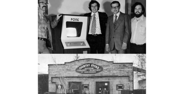 Από αριστερά βλέπετε τους: Ted Dabney & Nolan Bushnell (συνιδρυτές της Atari) , Fred Marincic (υπεύθυνος οικονομικών) και τον Allan Alcorn (δημιουργό του Pong). Η φωτογραφία έχει ληφθεί το 1973 στα γραφεία της Atari και στέκονται δίπλα από την αυθεντική καμπίνα του Pong.
